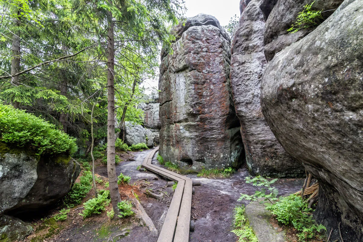Błędne Skały to jedna z najciekawszych atrakcji Kudowy-Zdroju. Ten naturalny labirynt skalny przyciąga setki turystów dziennie. Wąskie szczeliny między skałami tworzą fascynujący system korytarzy. Niektóre przejścia mają zaledwie 60 cm szerokości.